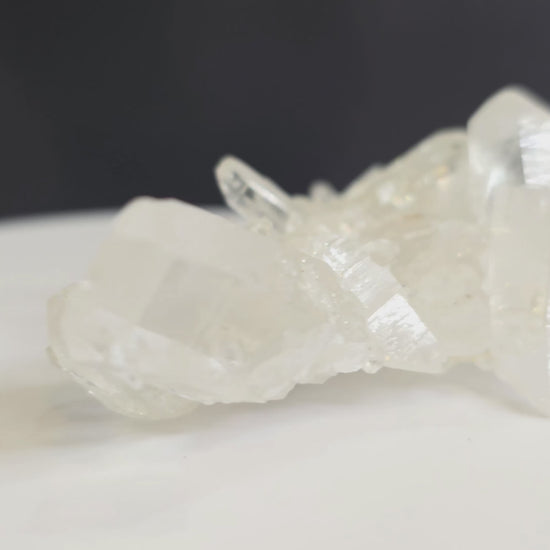 A beautiful example of Arkansas quartz, this cluster displays high luster, clear terminations, and the dynamic, radiating formation that collectors love.