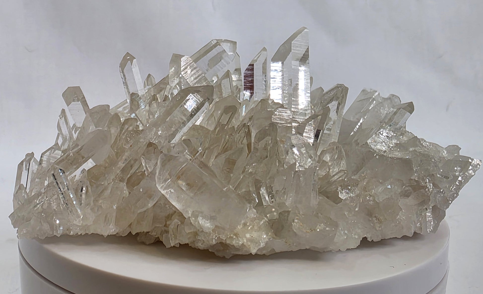 This radiant clear quartz cluster is bursting with well-defined, high-luster points and excellent clarity throughout. It comes from the historic High Cliff Mine in Arkansas (formerly known as the High Peak Mine), one of the premier sources for world-class quartz specimens in North America.