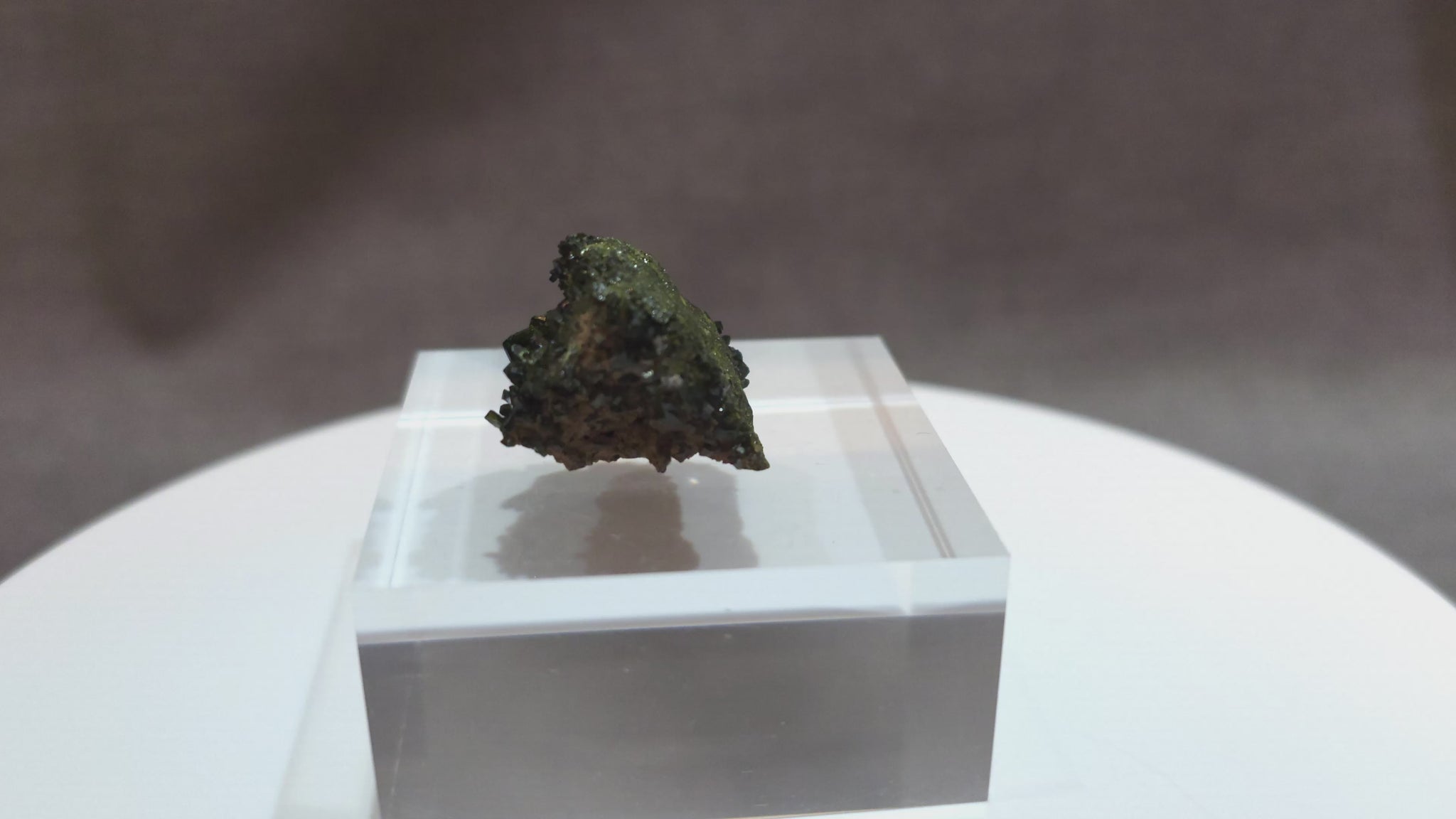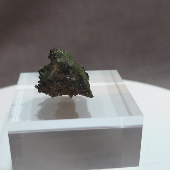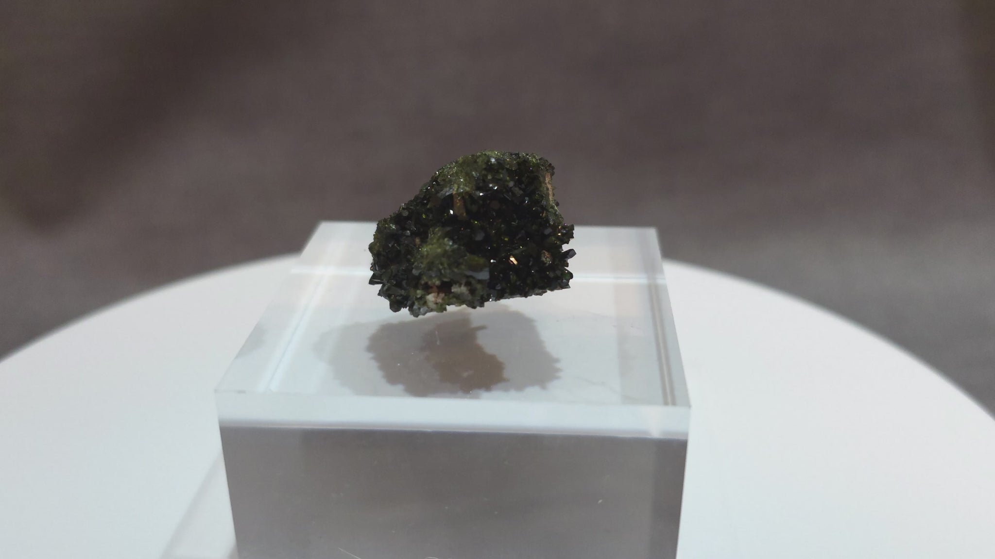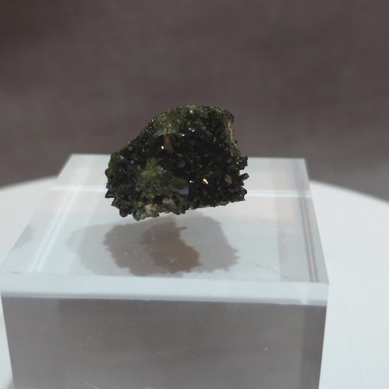 This compact epidote specimen features densely packed crystals with a rich, dark green-black coloration and exceptional luster. The well-formed terminations and reflective surfaces give this piece a bold, eye-catching appeal. Subtle olive-green highlights from natural matrix growth add texture and depth.