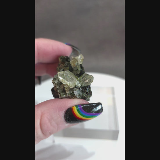Epidote is known for attracting abundance, amplifying personal growth, and enhancing protection. Quartz is revered for magnifying energy, promoting clarity, and aligning intentions. Together, they form a powerful duo for manifestation, spiritual growth, and grounding.