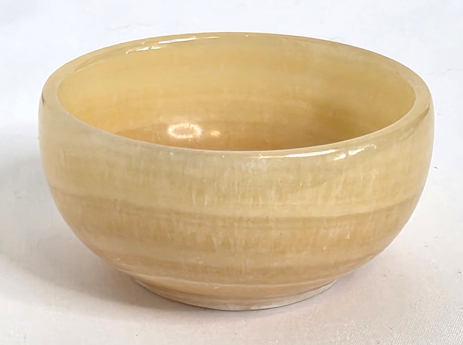 This beautifully carved Honey Calcite bowl radiates soft golden tones and warm, sunny energy. Its smooth finish and gentle translucence make it a perfect addition to any sacred space, altar, or crystal collection.