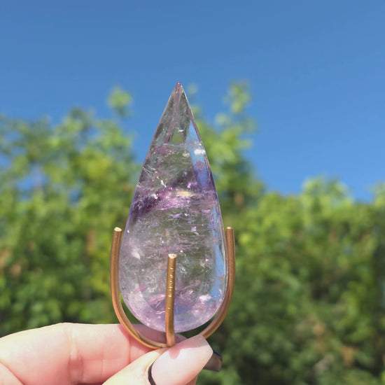 Brazilian Phantom Amethyst – Teardrop Display on Gold Stand