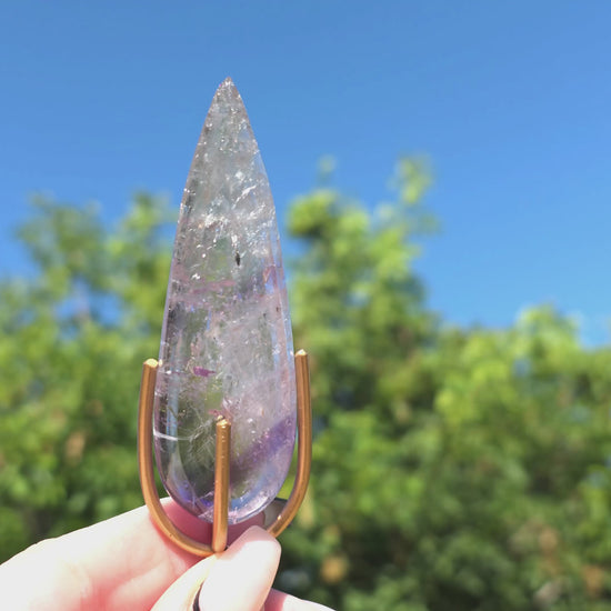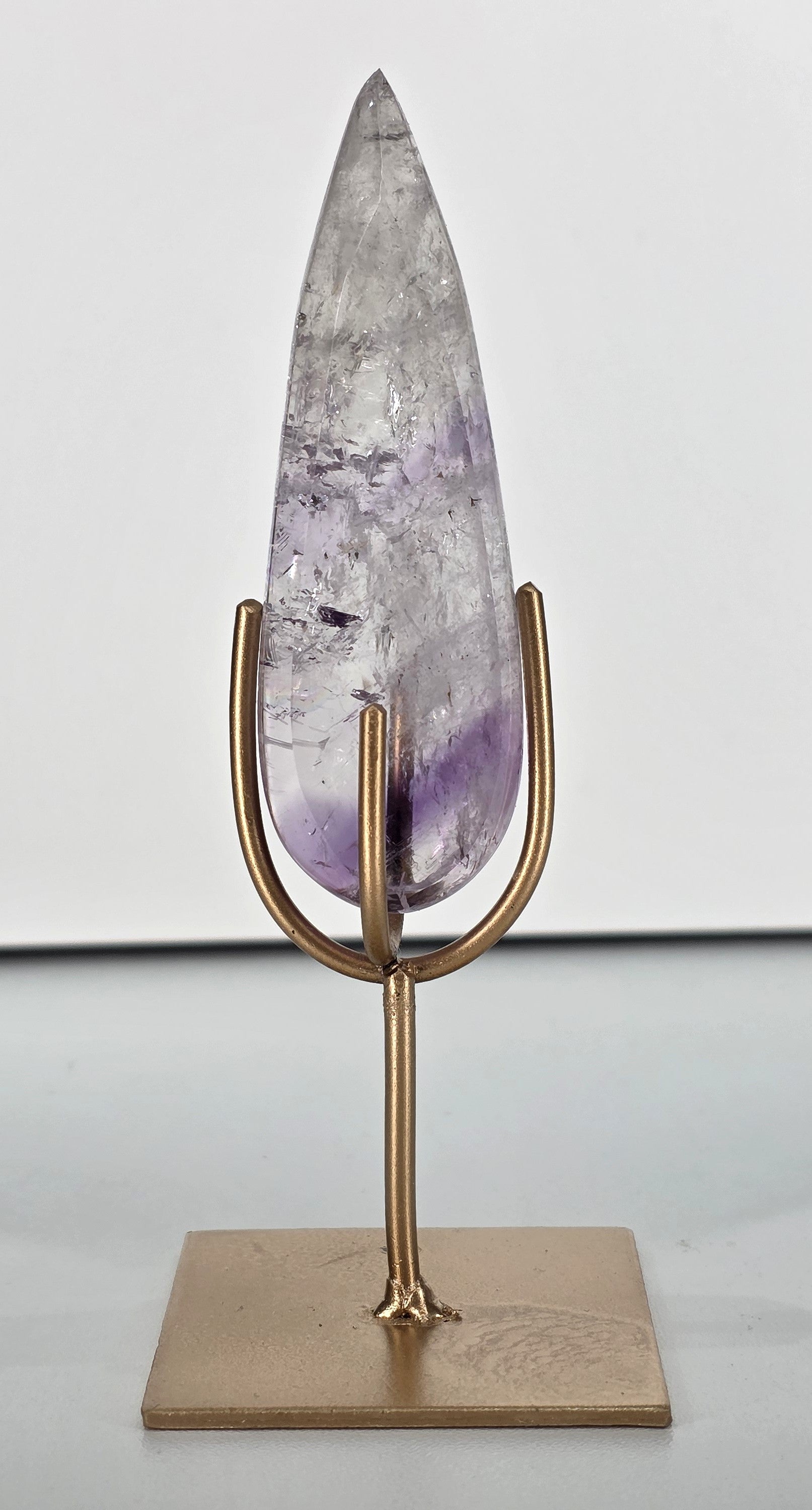 Brazilian Phantom Amethyst – Teardrop Display on Gold Stand