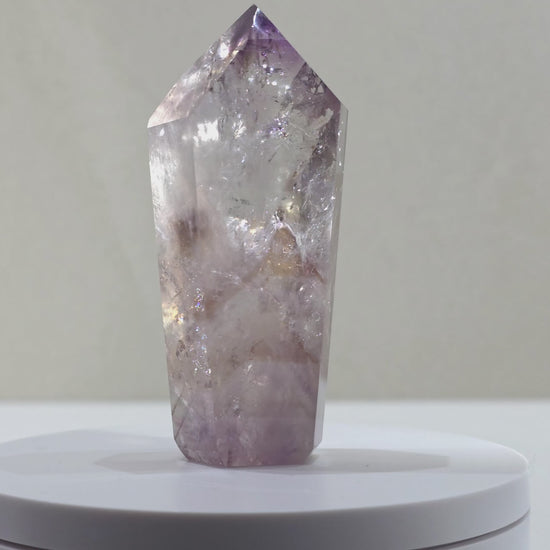 UV-Reactive Amethyst Tower with Powellite Inclusions – Brazil