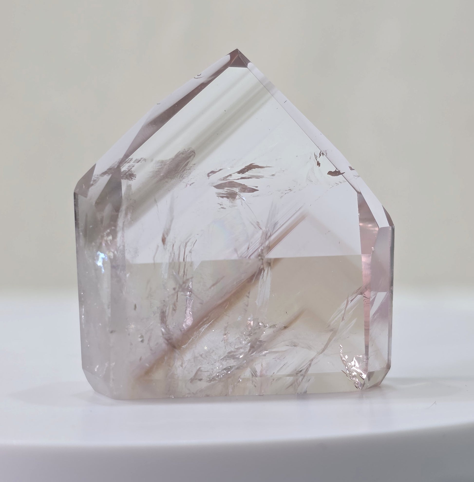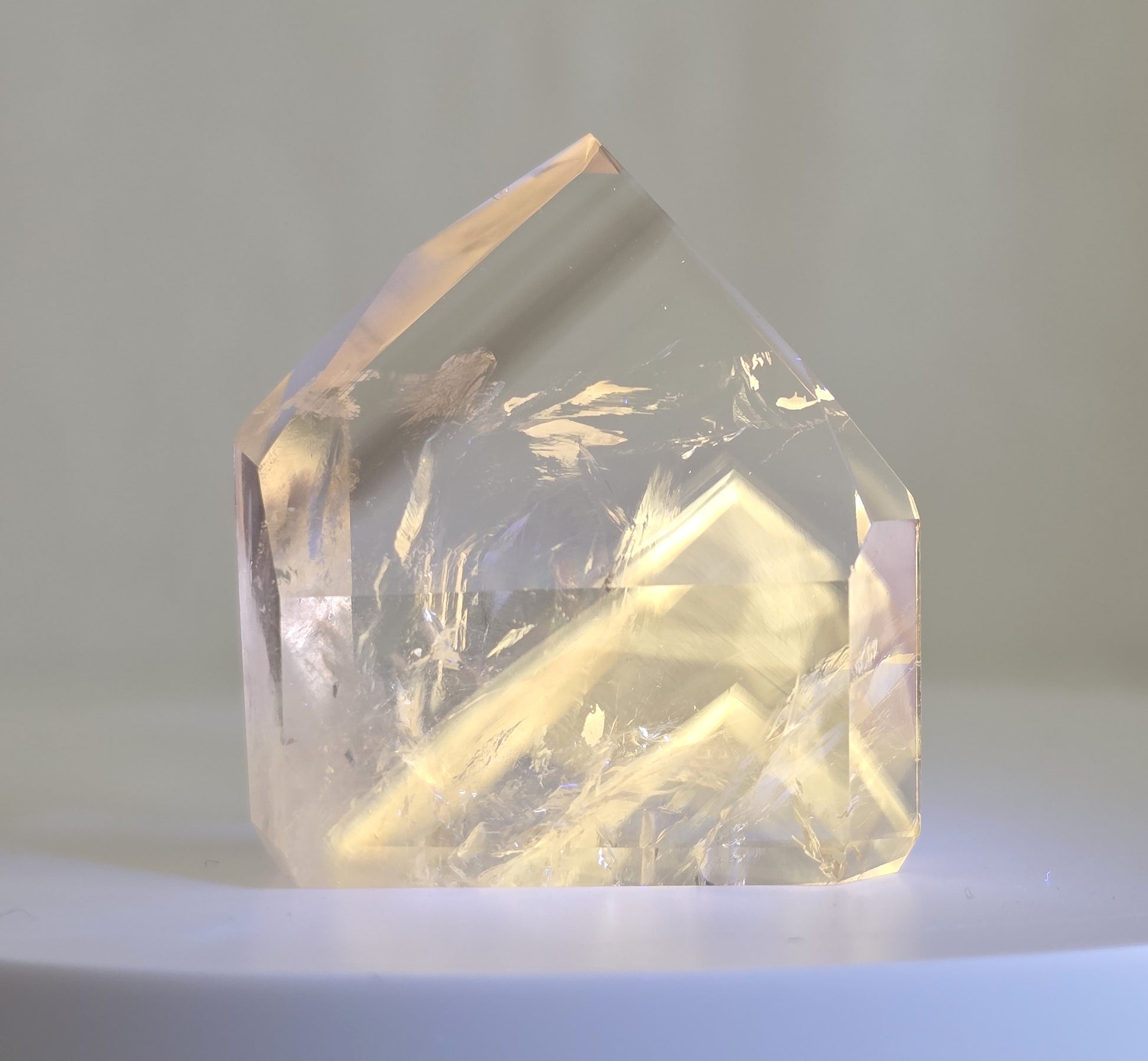 This beautiful polished tower features delicate amethyst with striking internal powellite phantoms, which glow under UV light ✨. A captivating addition to any crystal collection, altar, or display, this piece combines natural elegance with rare mineral inclusions.