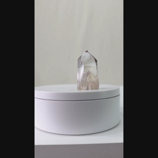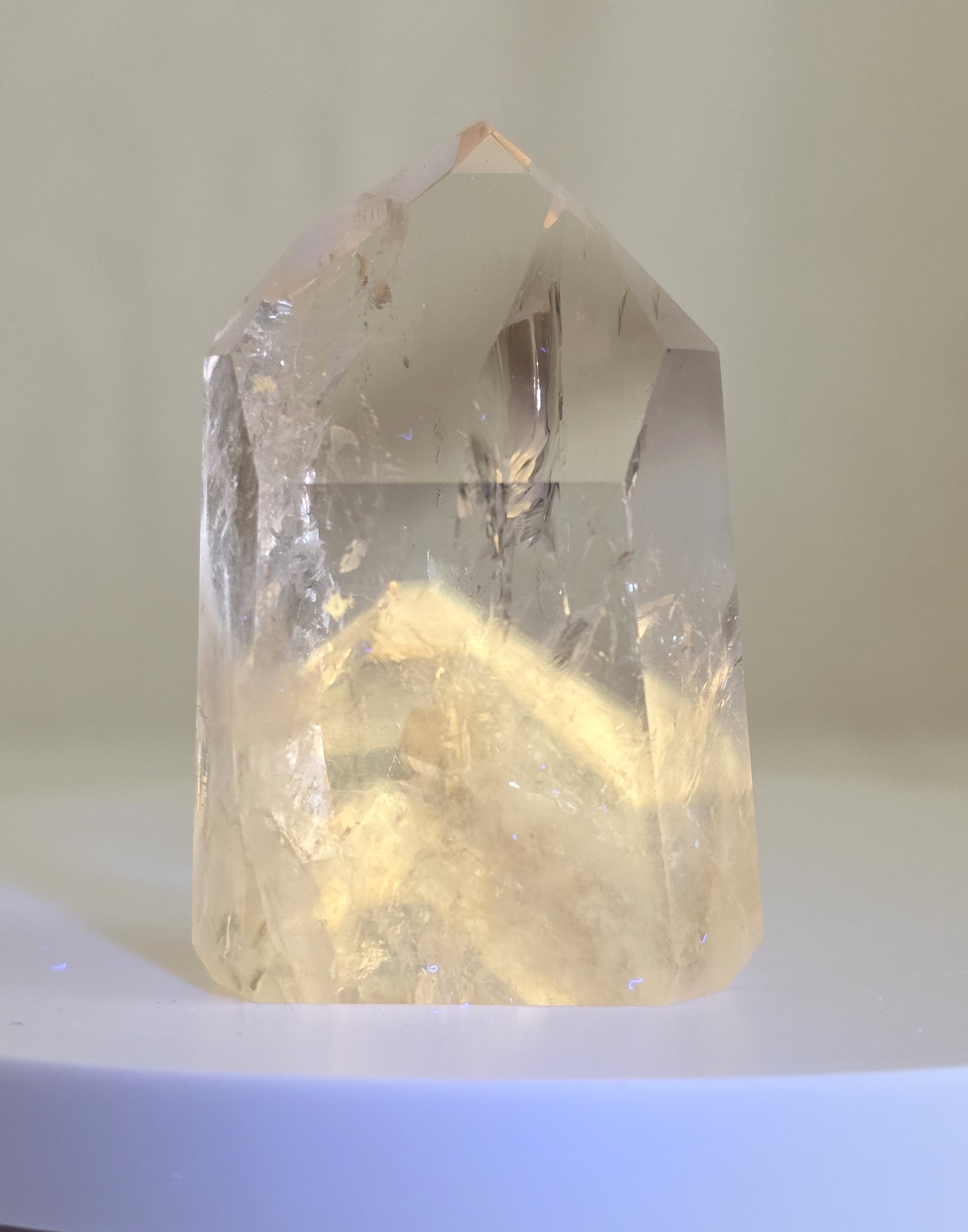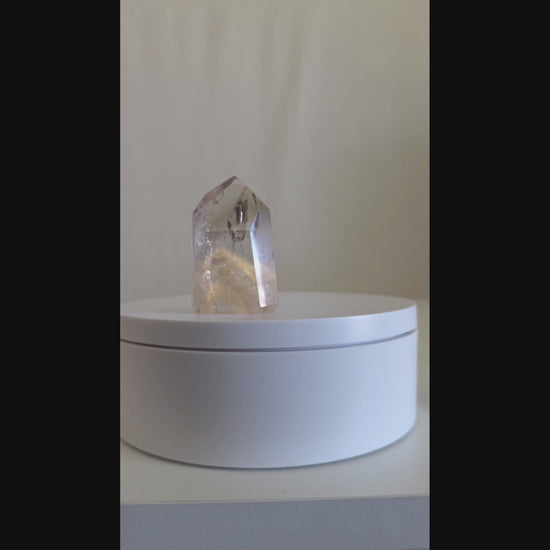 This beautiful polished tower features delicate amethyst with striking internal powellite phantoms, which glow under UV light ✨. A captivating addition to any crystal collection, altar, or display, this piece combines natural elegance with rare mineral inclusions.
